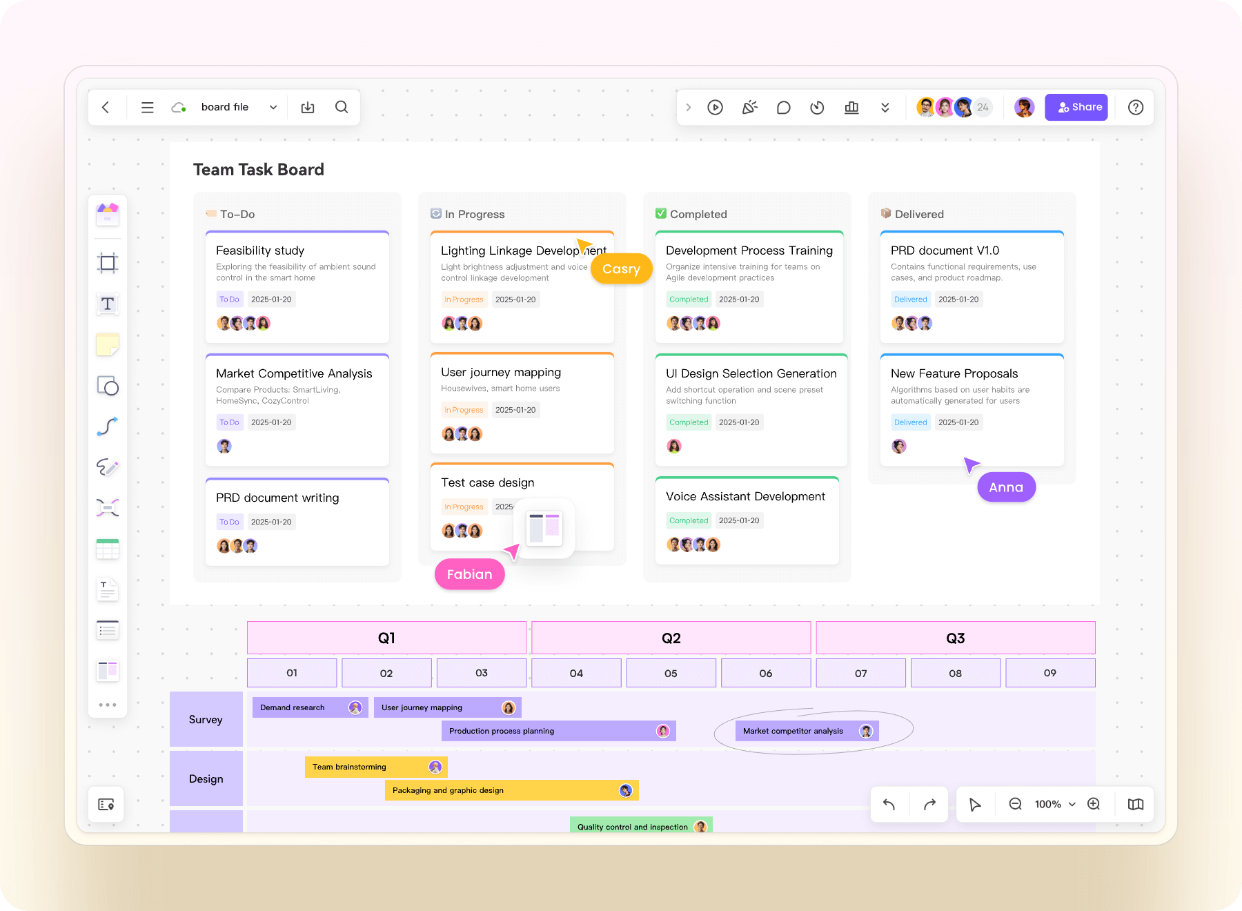 Market analysis, product planning, requirements sorting, task tracking, team